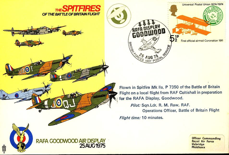 1975 SPITFIRES Goodwood Display RAFA stamp cover flownrefE58
