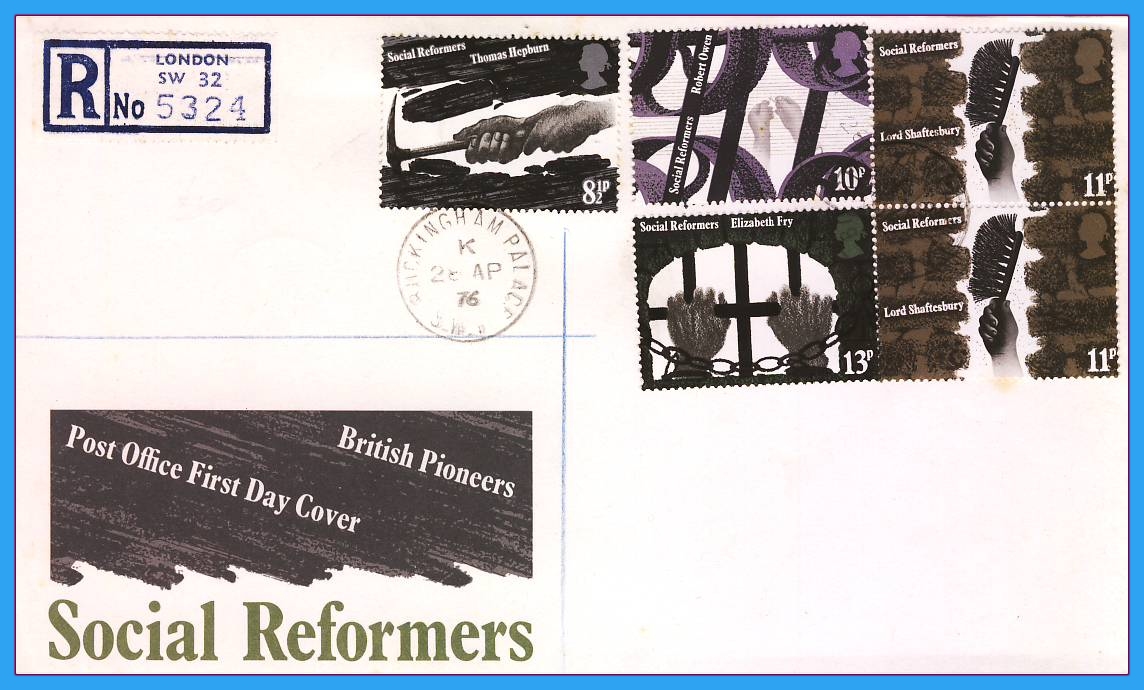 1976-04-28 Pioneers and Social Reformers Stamps Post Office FDC with Buckingham Palace CDS sent Registered Post refcd20