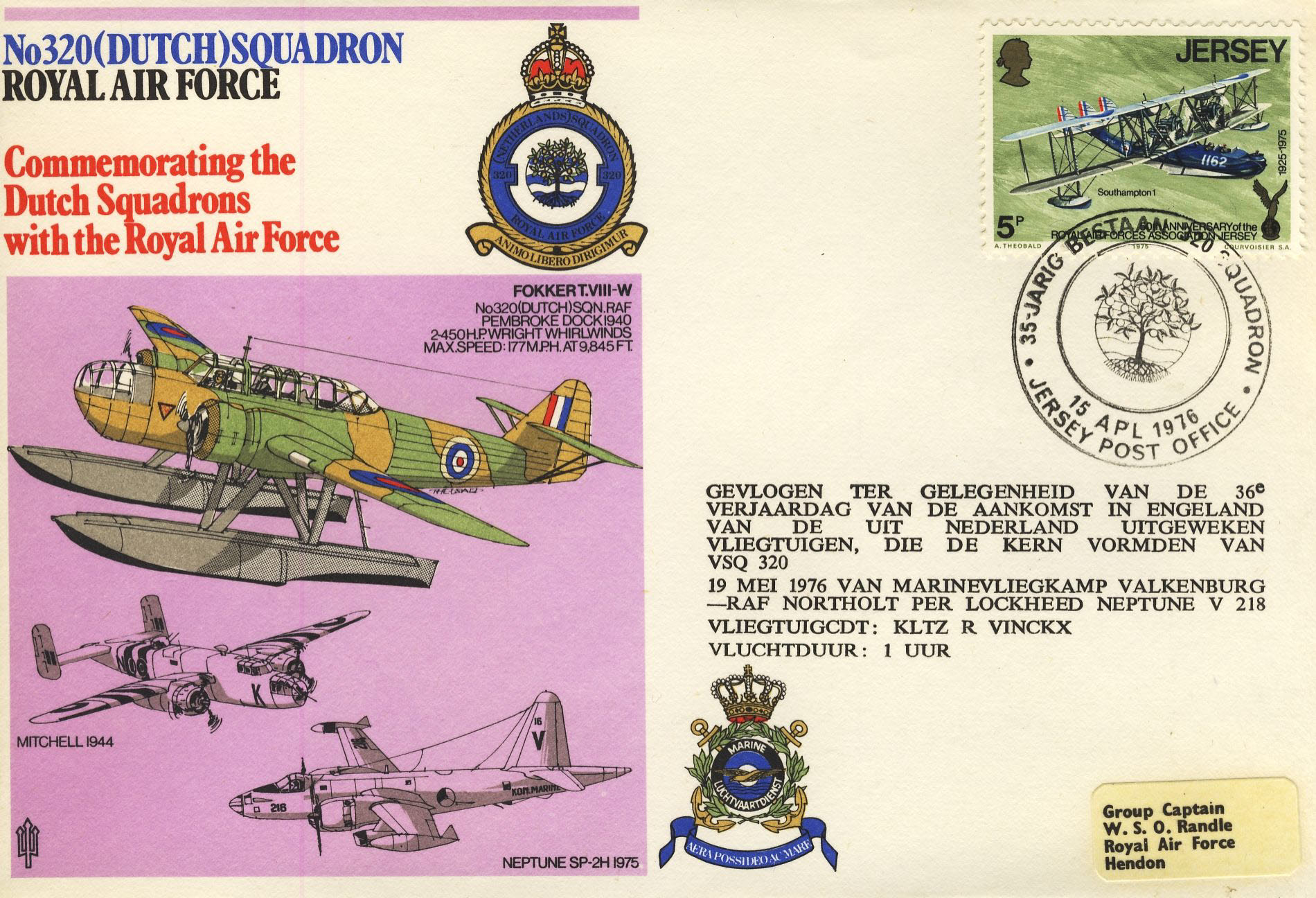 1976 Jersey Post Office No320 Dutch Squadron Royal Air Force flown cover rcd49