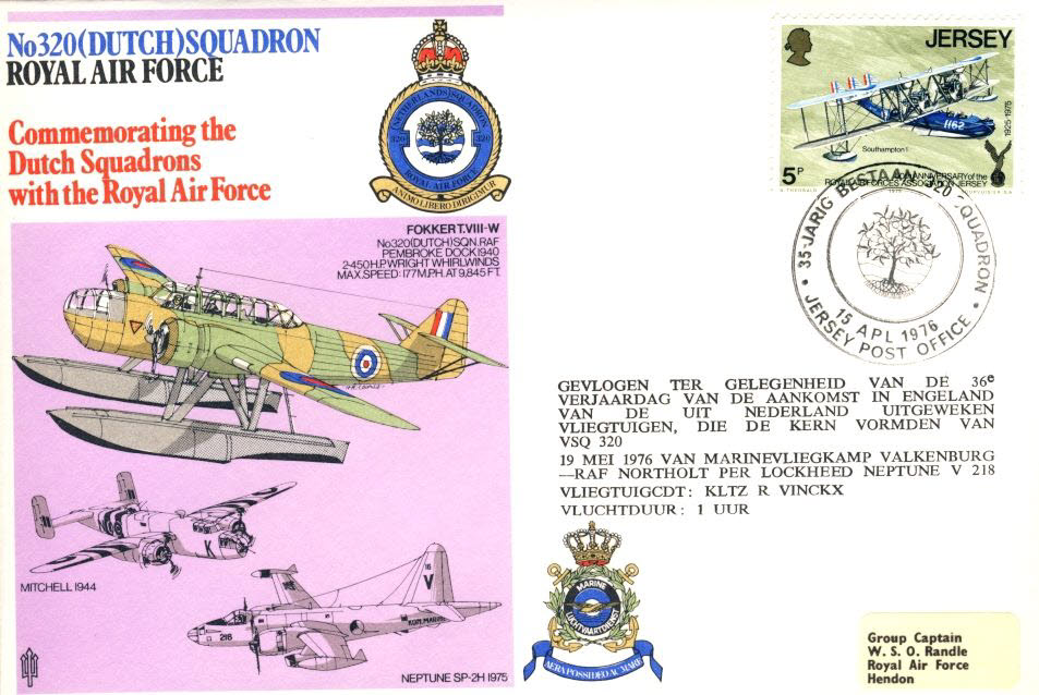 1976 No320 Dutch Squadron RAF flown JERSEY stamp cover refE102