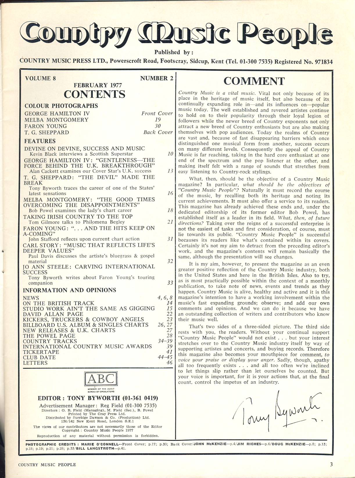 1977 February Country Music People magazine GEORGE HAMILTON IV ref102285