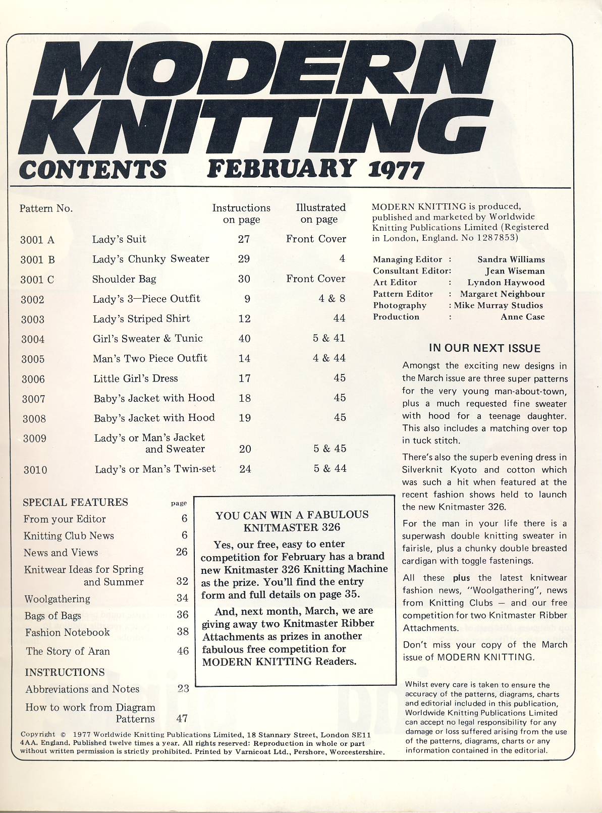 1977 FEBRUARY Modern Knitting Machine Knitters magazine ref101865