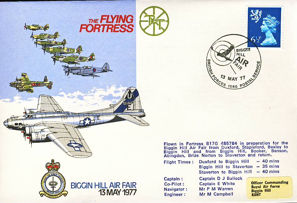 1977 FLYING FORTRESS RAF flown stamp cover BIGGIN HILL BFPO 1560 refF144 Unsealed with insert.