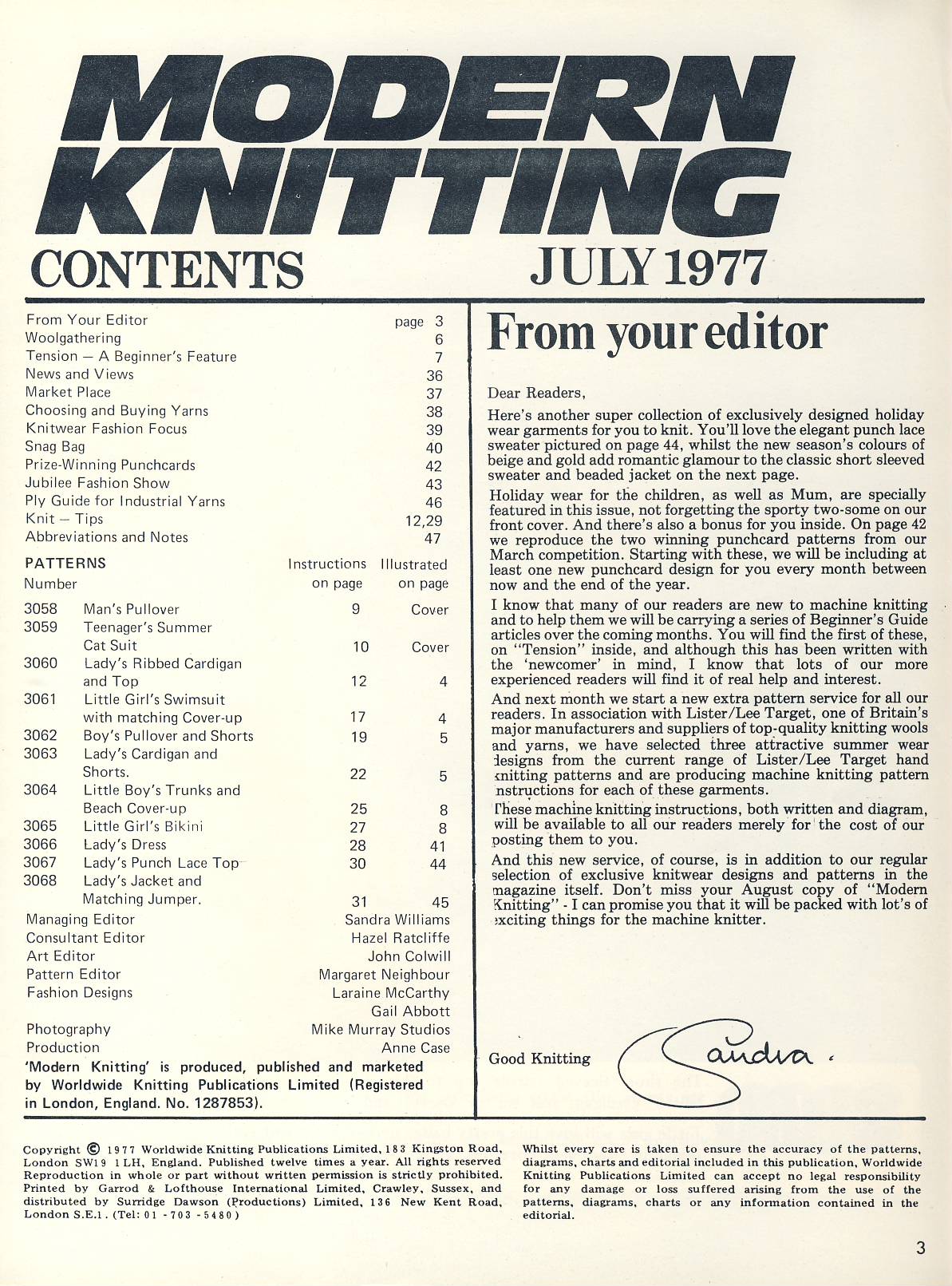 1977 JULY Modern Knitting Machine Knitters magazine ref101863