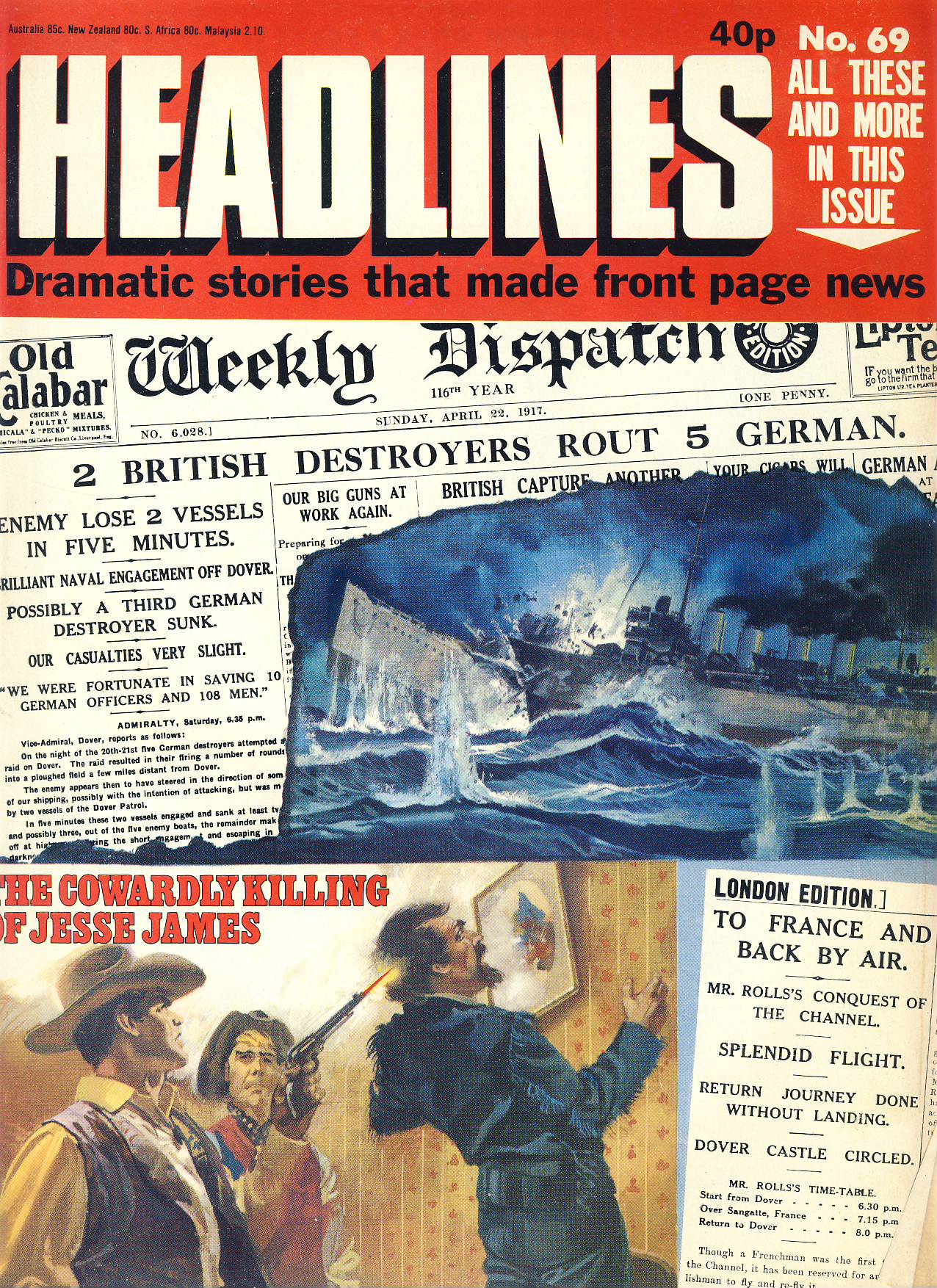 Charles Rolls (co-founder Rolls-Royce) was Britian’s first great airman and other Dramatic stories that made front page news. This is an original vintage paper magazine. Please read full description for condition.More infoThis is a vintage IPC magazines paper publication in read condition with signs of age with scuffs to edges, creases and discolouration of paper. Evidence of reading with marks and page turns. Please feel free to ask questions. Thank you for your interest.Reference1977 May HEADLINES magazine No.69 JESSE JAMES