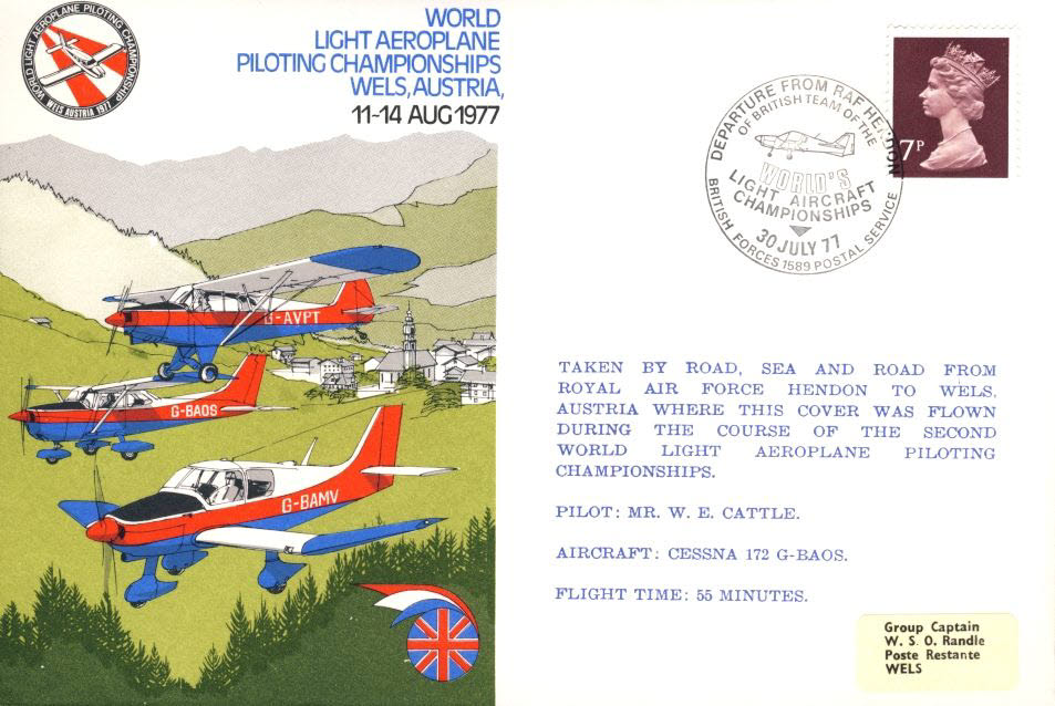 1977 RAF Hendon to Wels AUSTRIA flown stamp cover Light Aeroplane Piloting Championships refE136