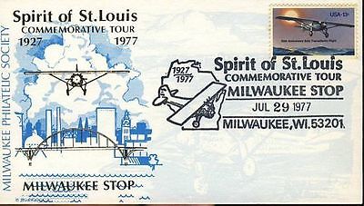 1977 Spirit of St.Louis Commemorative Tour Milwaukee Stop cover no insert