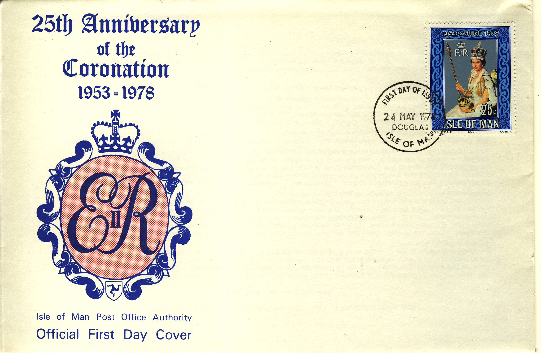 1978-05-24 Coronation 25th Anniversary ISLE OF MAN Stamp FDC refG615