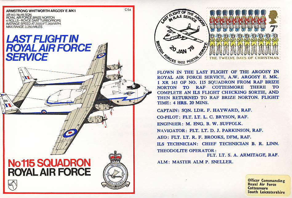 1978 ARGOSY Last Flight RAF service flown stamp cover BFPO No115 Squadron refF168