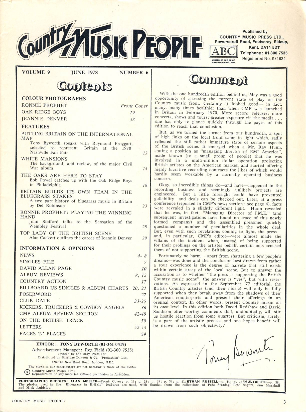 1978 June Country Music People magazine RONNIE PROPHET ref102273