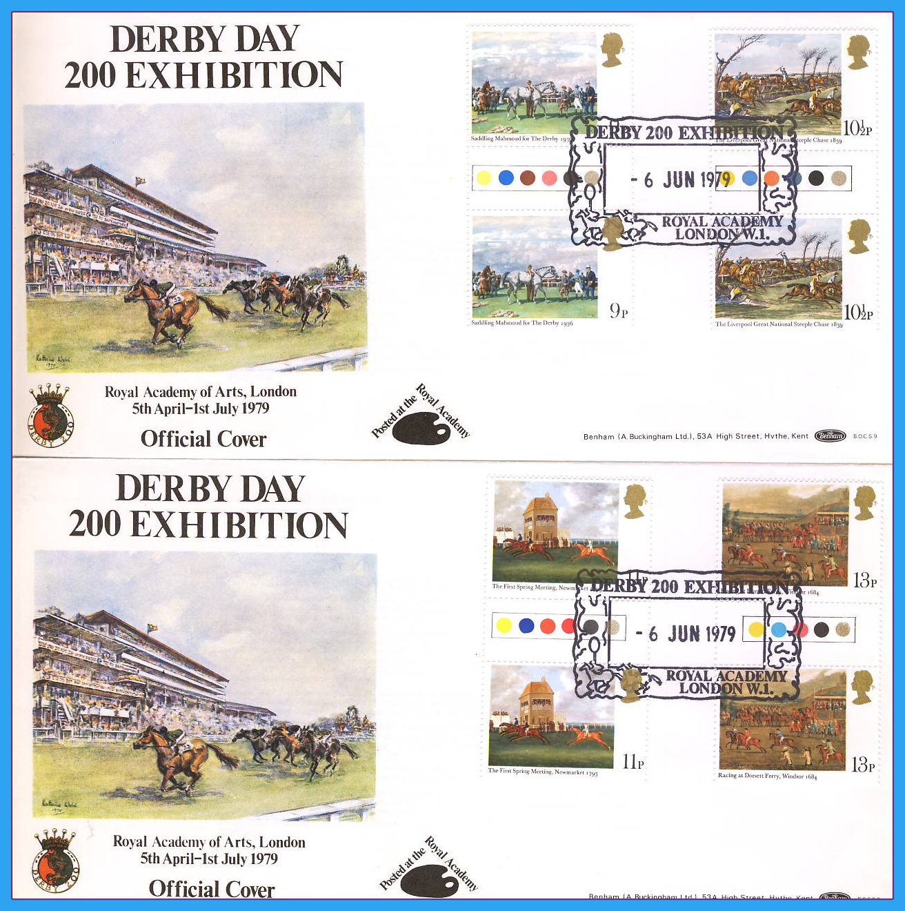 2 x 1979-06-06 Royal Academy of Arts London OFFICIAL COVER DERBY DAY 200 EXHIBITION Horse Racing Paintings traffic light gutter pair Stamps Benham First Day Covers refc138
