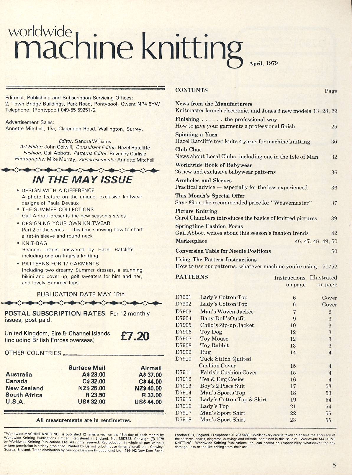 1979 April Worldwide Machine Knitting magazine ref101861