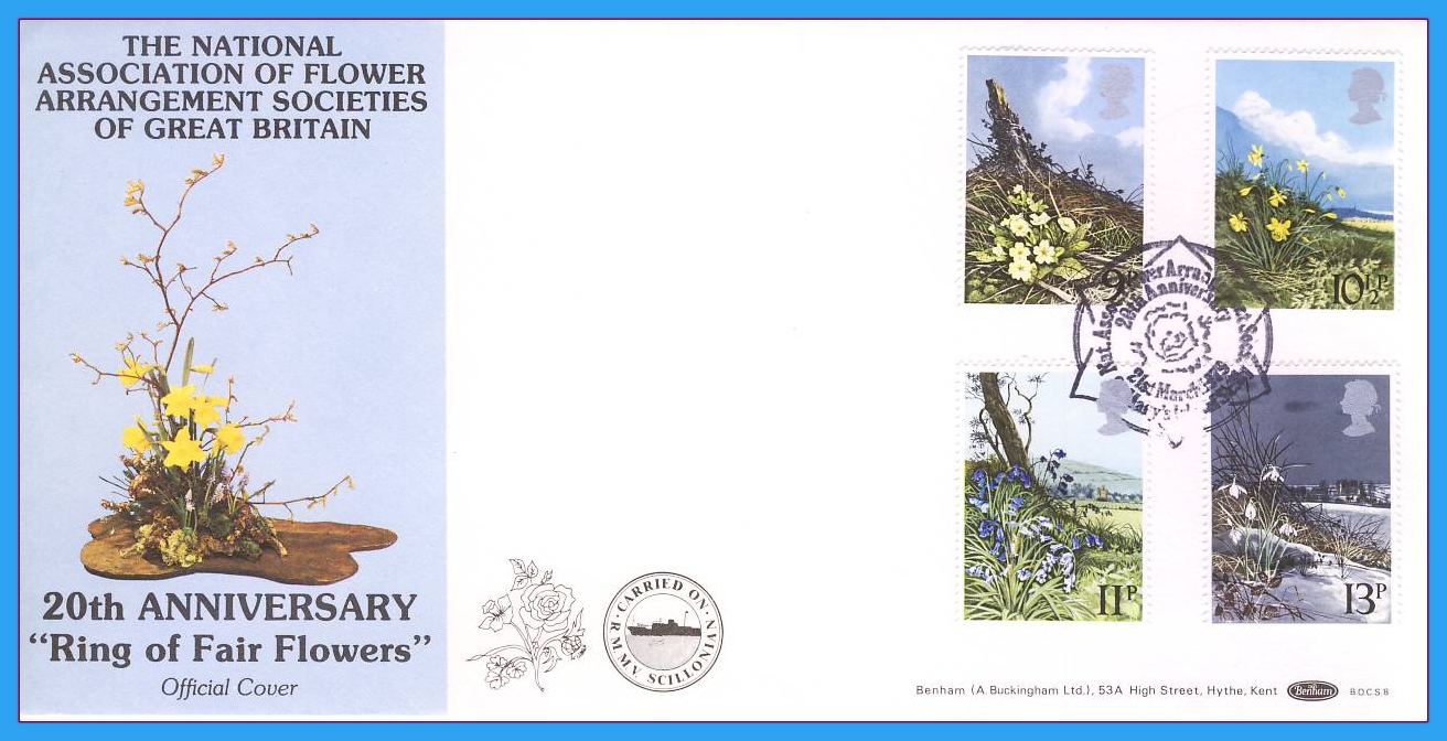 1979-03-21 British Wild Flowers Stamps OFFICIAL First Day Cover Benham BOCS 8 Carried on RMMV Scillonian rcd118