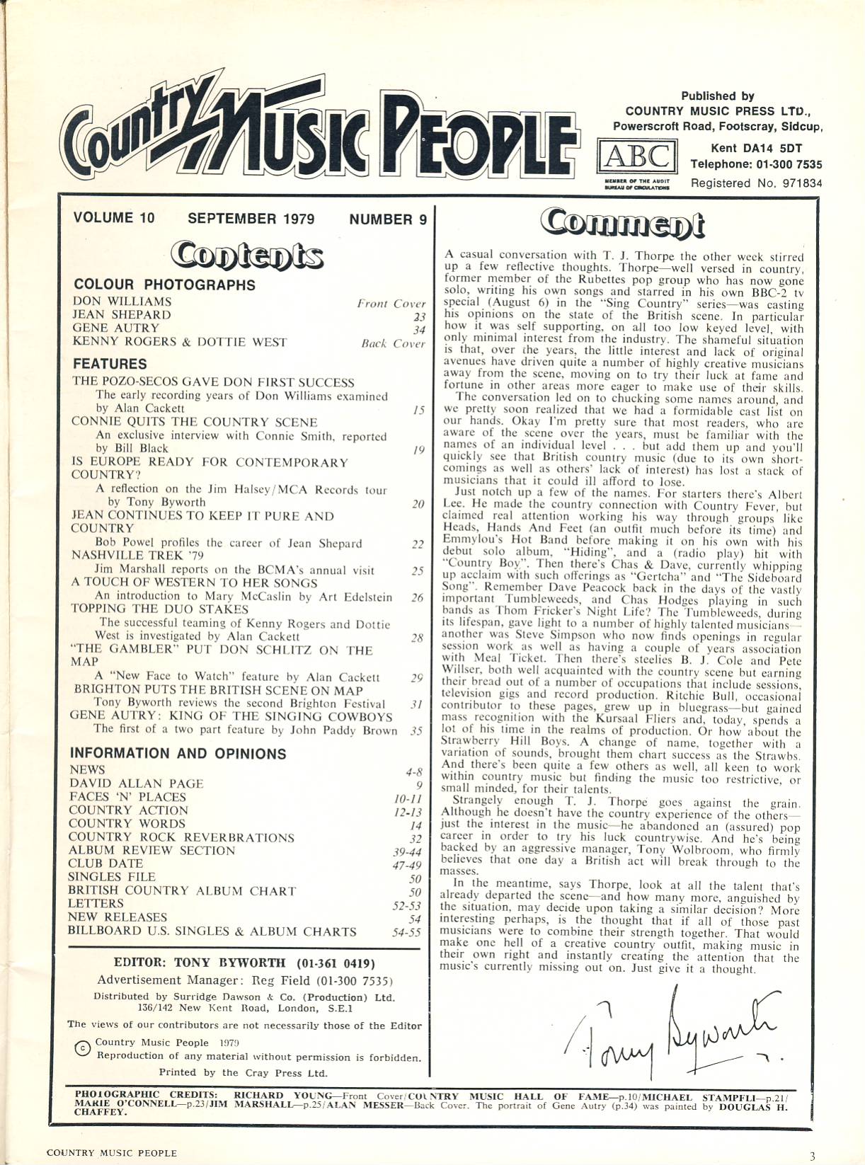 1979 September Country Music People magazine DON WILLIAMS, KENNY ROGERS, DOTTIE WEST ref102266
