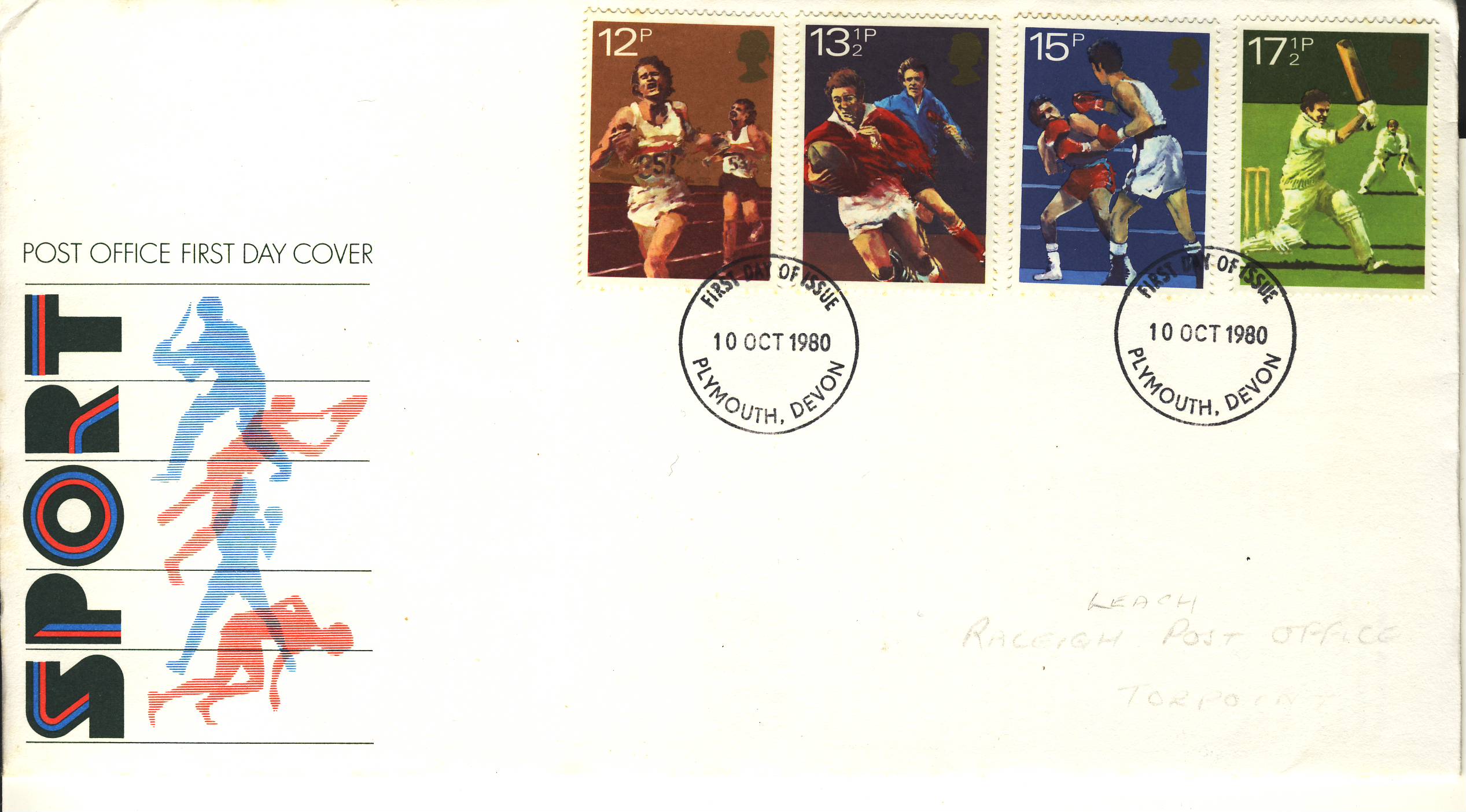 1980-10-10 Sports Anniversaries Stamps FDC PLYMOUTH DEVON Cover refG337