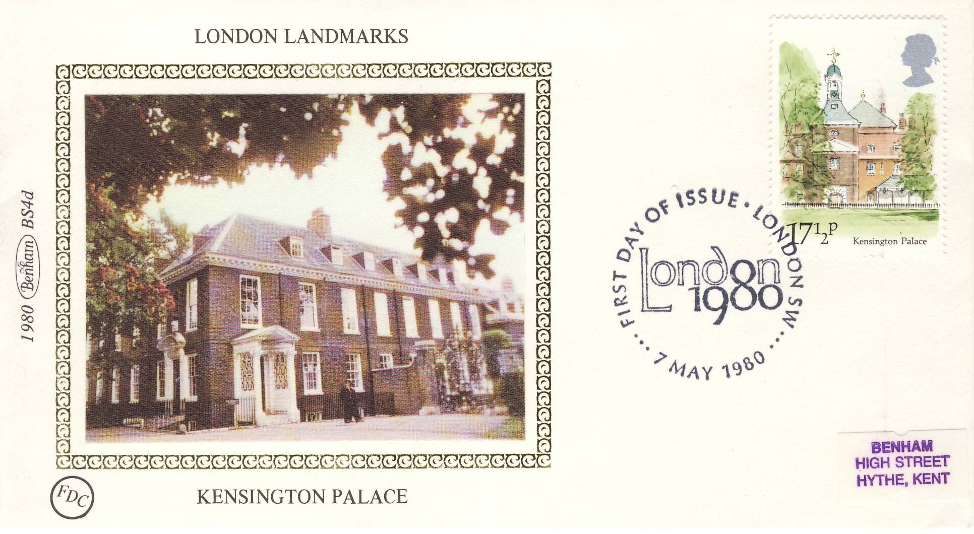 1980 BS4d London Landmarks Kensington Palace stamps Benham Sm Silk Cover refF516