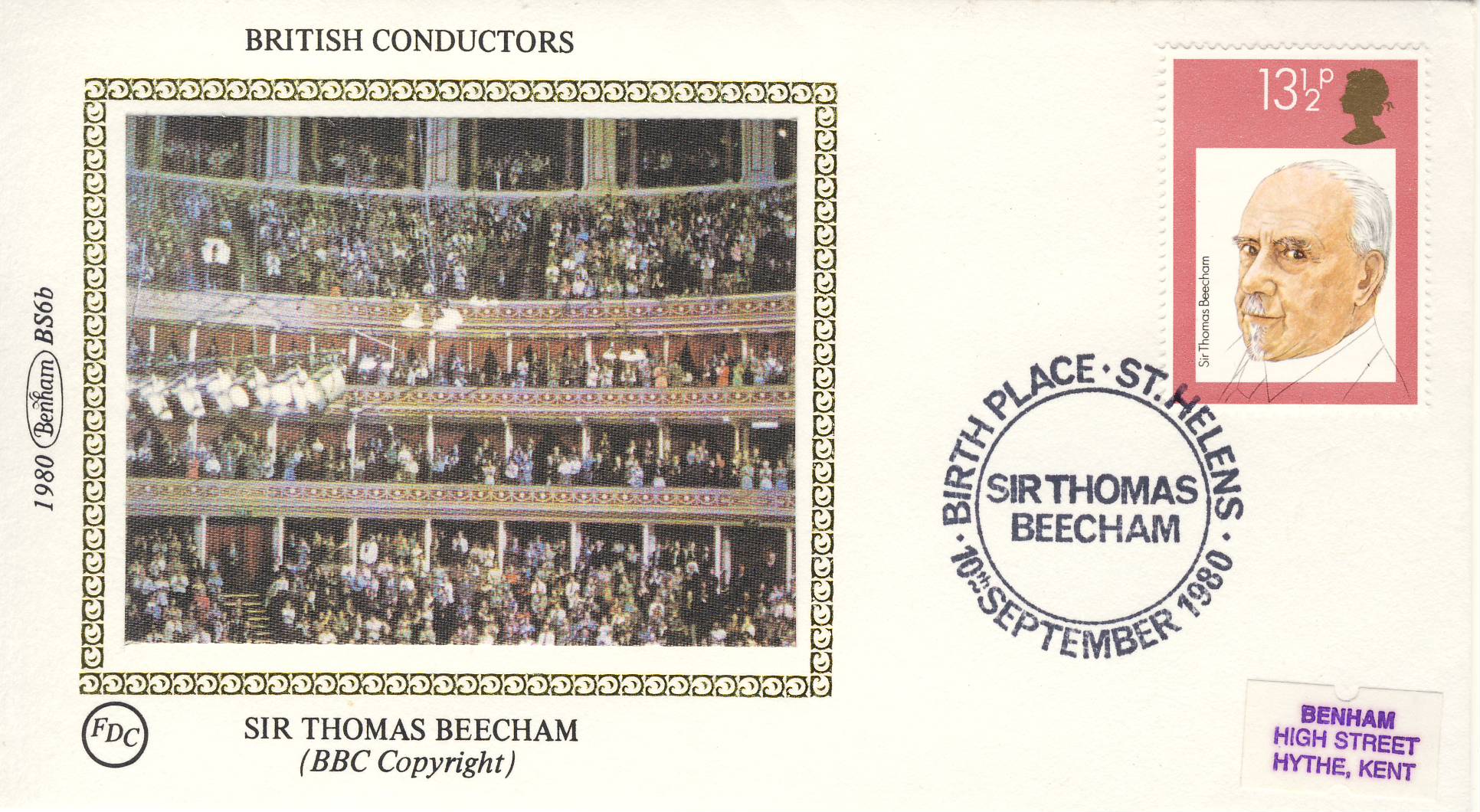 1980 BS6b sir Thomas Beecham BRITISH CONDUCTORS stamps Benham Sm Silk Cover refF513