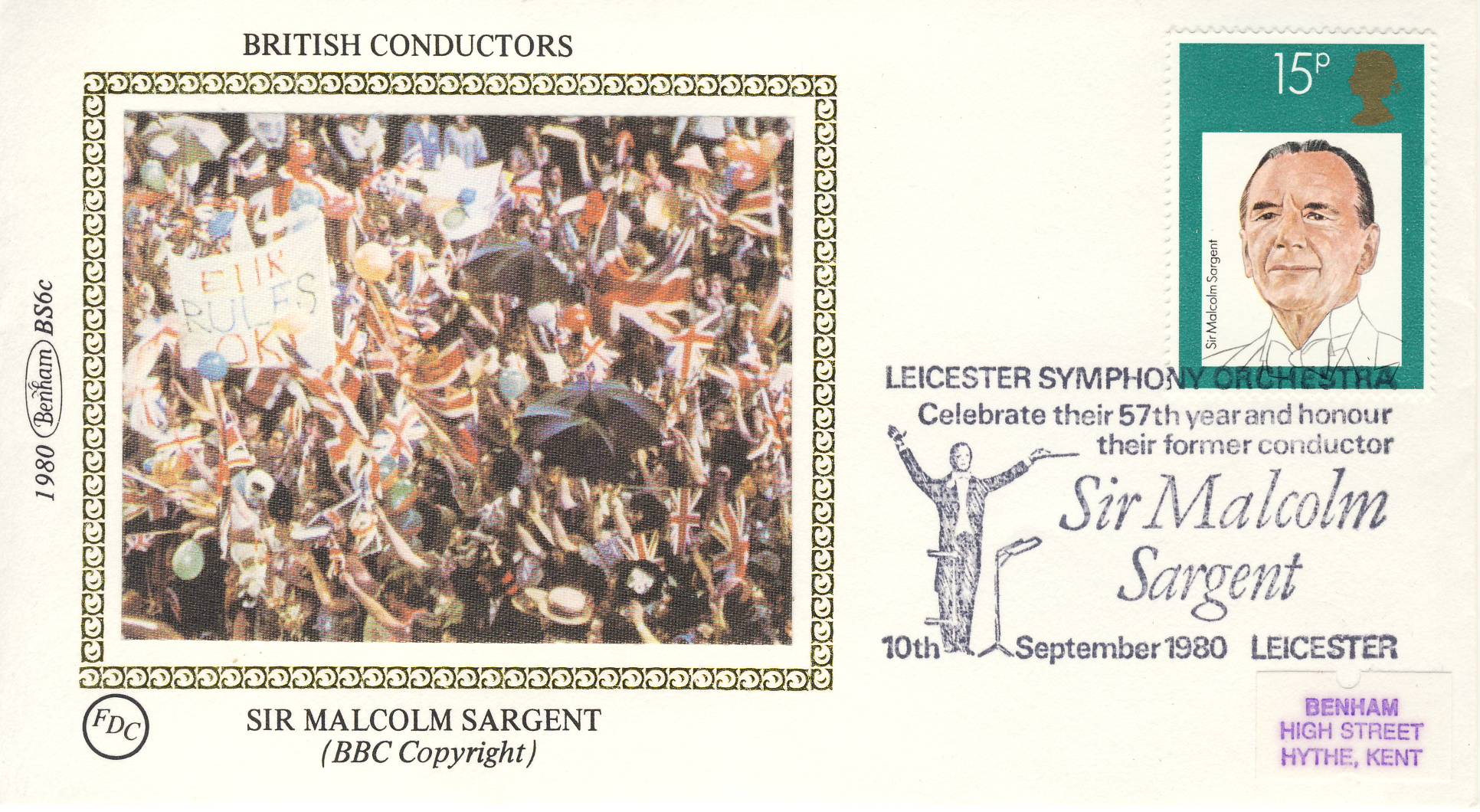 1980 BS6c Sir Malcolm Sargent BRITISH CONDUCTORS stamps Benham Sm Silk Cover refF512