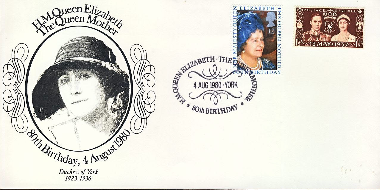 1980 H.M.Queen Elizabeth Queen Mother’s 80th Birthday YORK stamps cover refD187