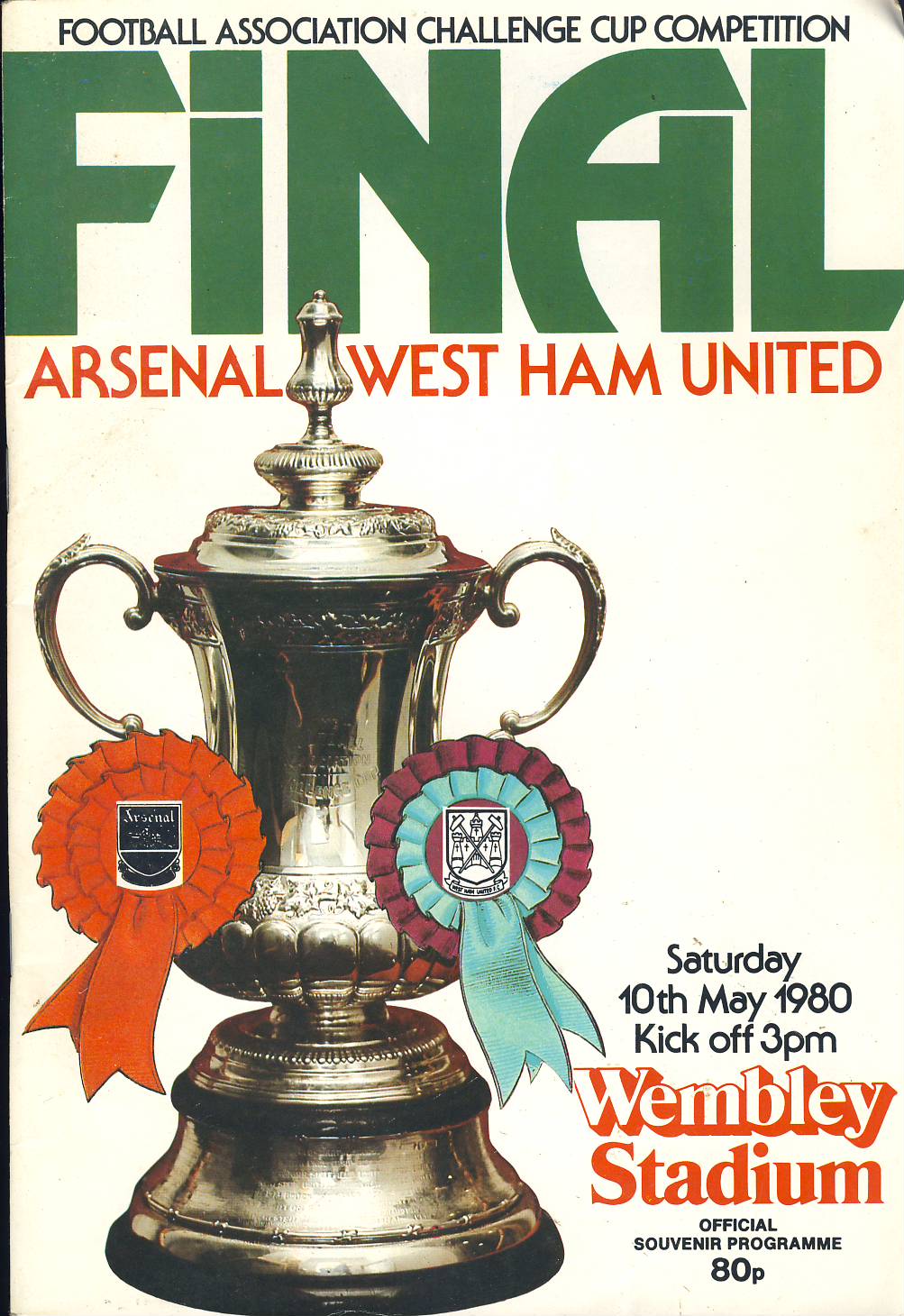 1980 Wembley Stadium FINAL Arsenal v West Ham Utd official programme ref0106 A1