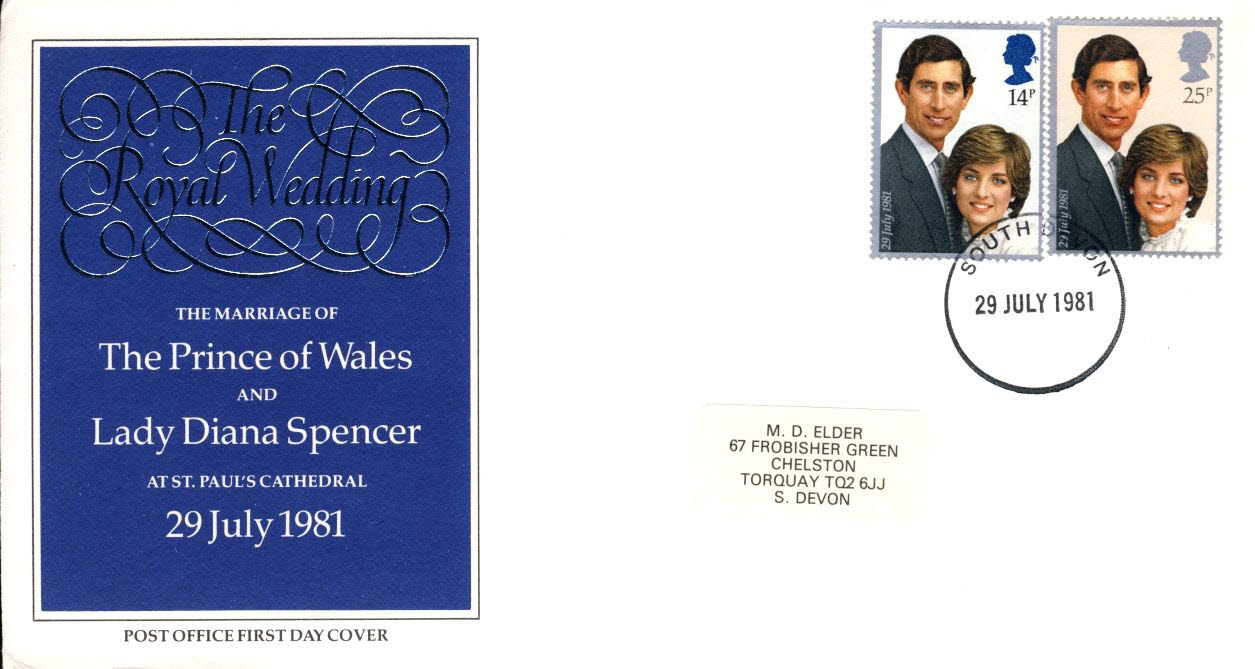 1981-07-22 Royal Wedding Stamps FDC cds South Devon refE190 Cover in good condition. Please see larger photo and full description for details.