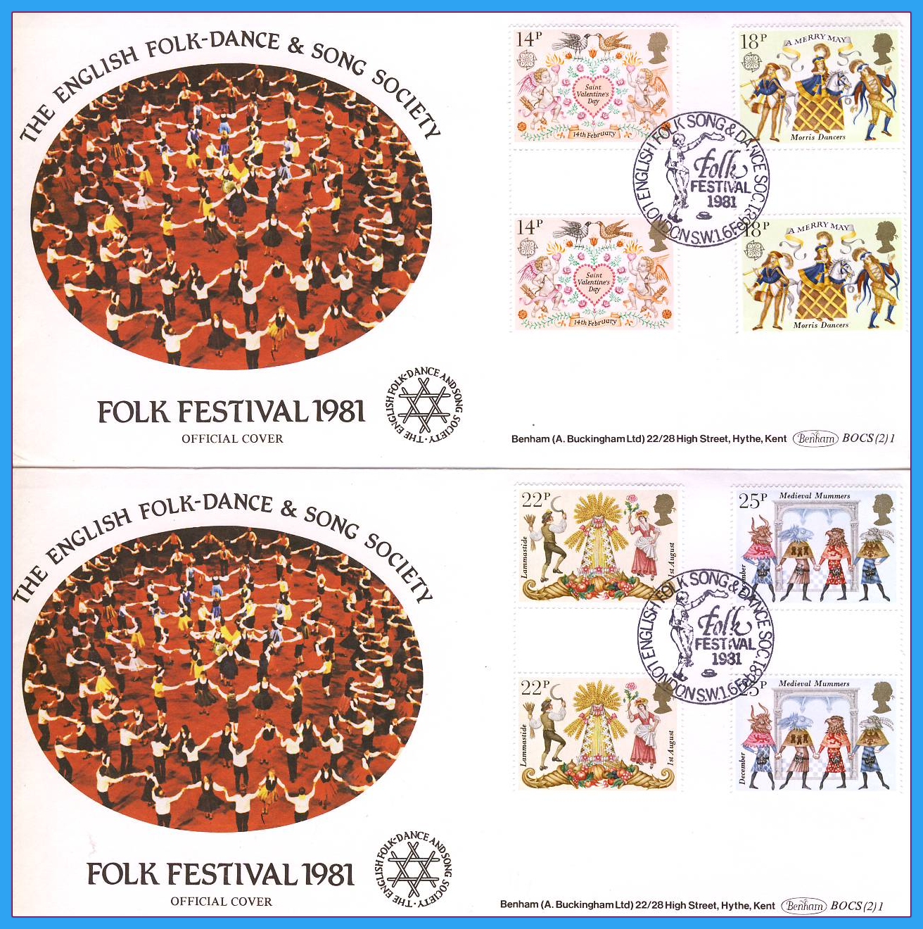 2 x 1981-02-06 Folk Festival Official Covers with Gutter Pair Folklore Stamps Benham First Day Covers refc126