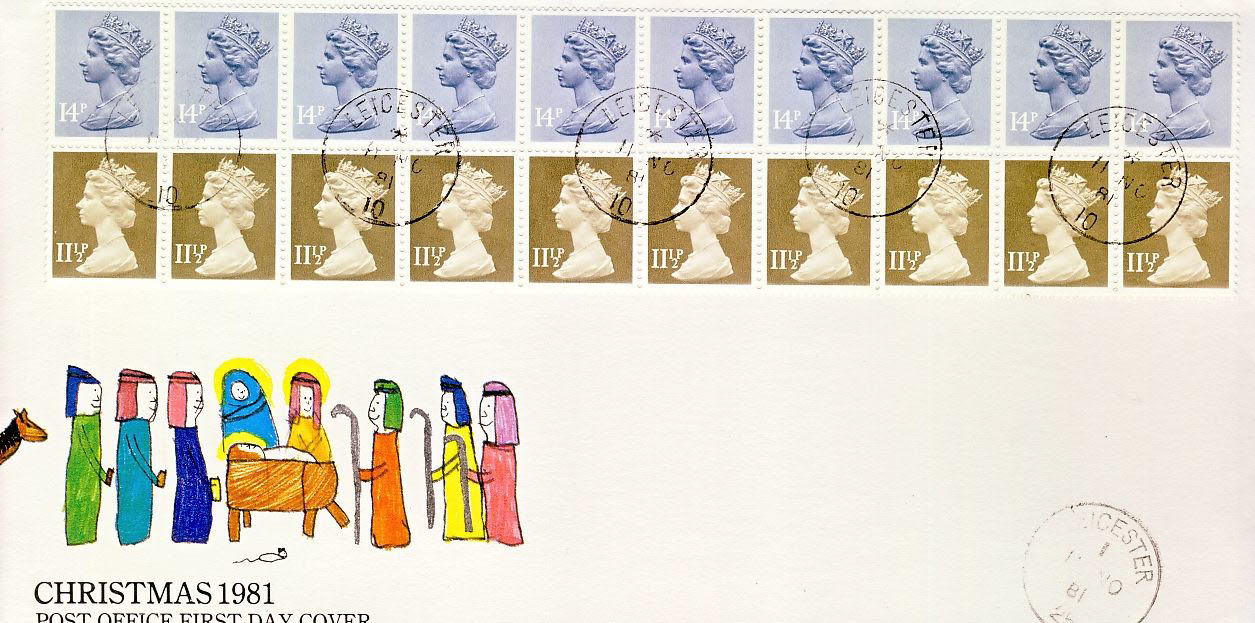 1981 Definitive Stamps Cover strips 10 x 14p, 10 x 11 1/2p Leicester refd68 In very good condition for age . Please see larger photo and full description for details. Flap Sealed inside with insert.