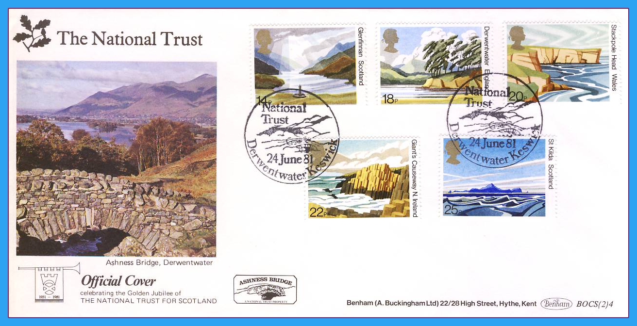 1981-06-24 National Trust Stamps First Day Cover OFFICIAL COVER Derwentwater BOCS(2)4 rcd125 Unsealed with insert card. Good Condition.