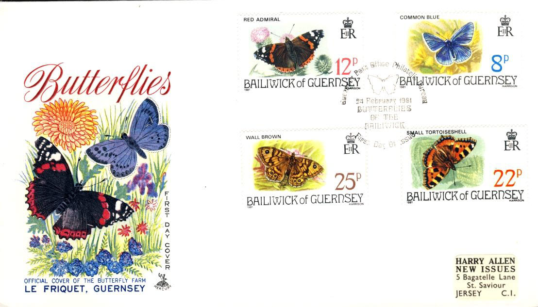 1981 Official Butterflies Guernsey stamps First Day Cover Mercury refE101105