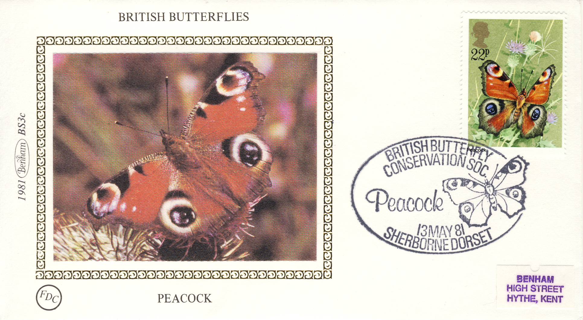 1981 PEACOCK BS3c BRITISH BUTTERFLIES Benham Sm Silk Cover refF494