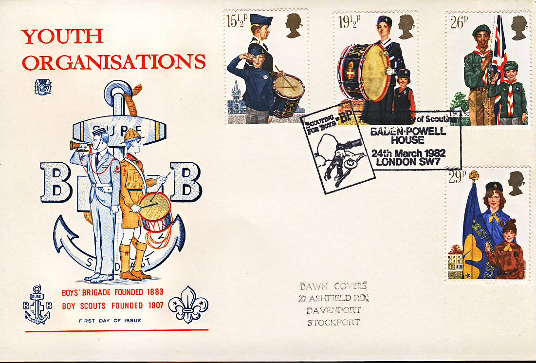 1982-03-24 Youth Organizations Stamps FDC Stuart Cover BADEN POWELL HOUSE refH115