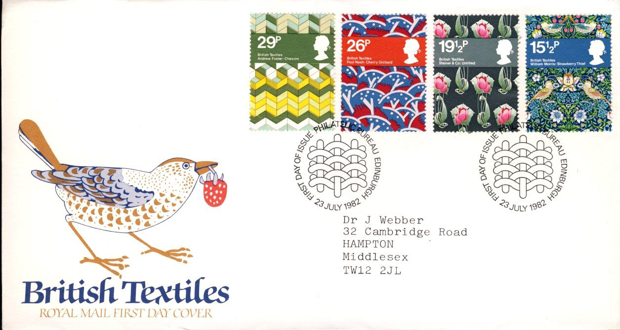 1982-07-23 British Textiles Stamps FDC refE179