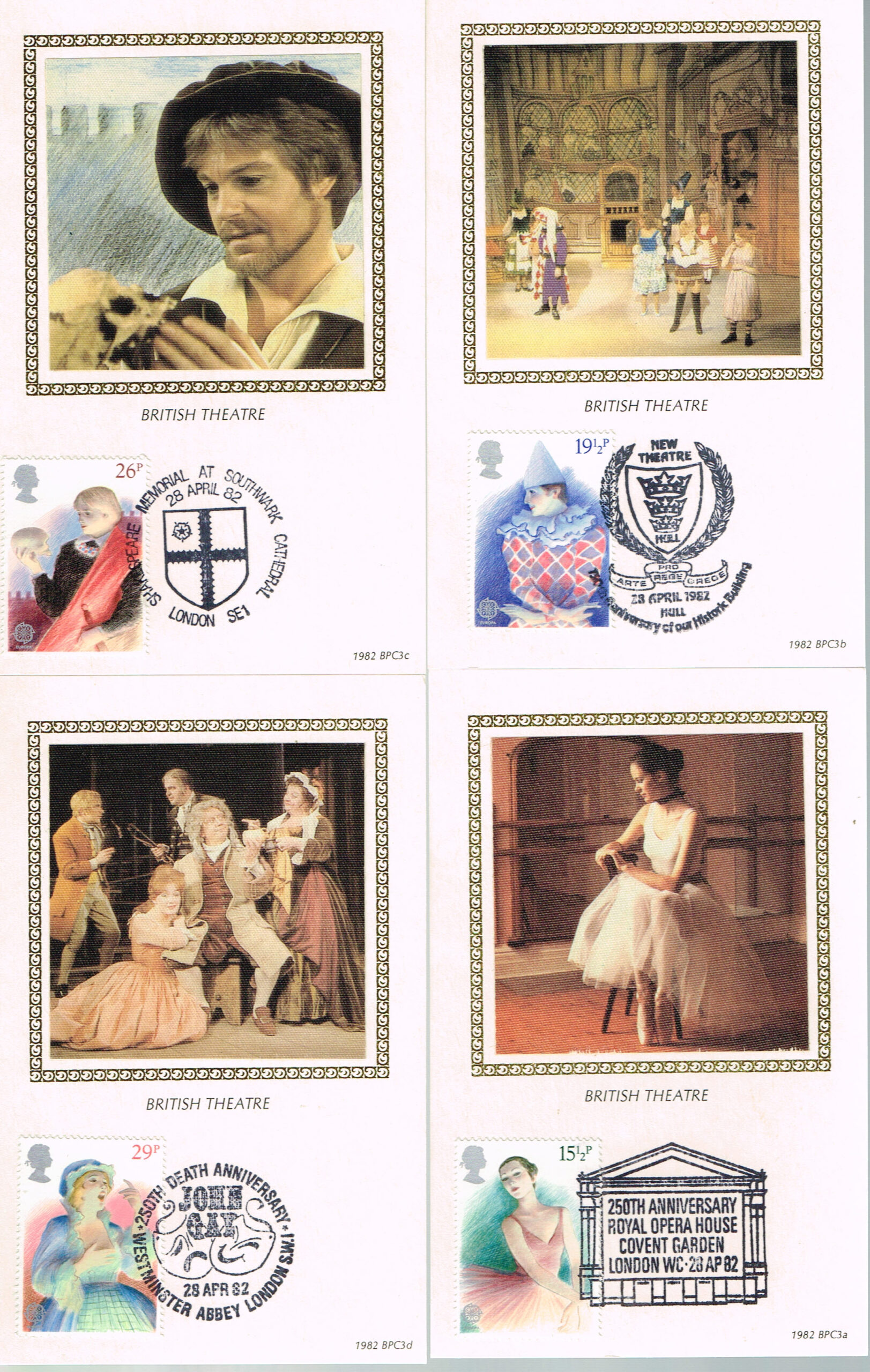 1982 British Theatre BPC3 Benham silk postcard set refE209