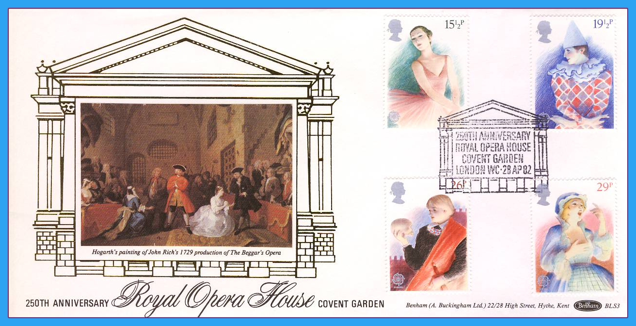 1982-04-28 British Theatre Stamps Covent Garden Royal Opera House FDCBLS3 Benham Silk FDC rcd93