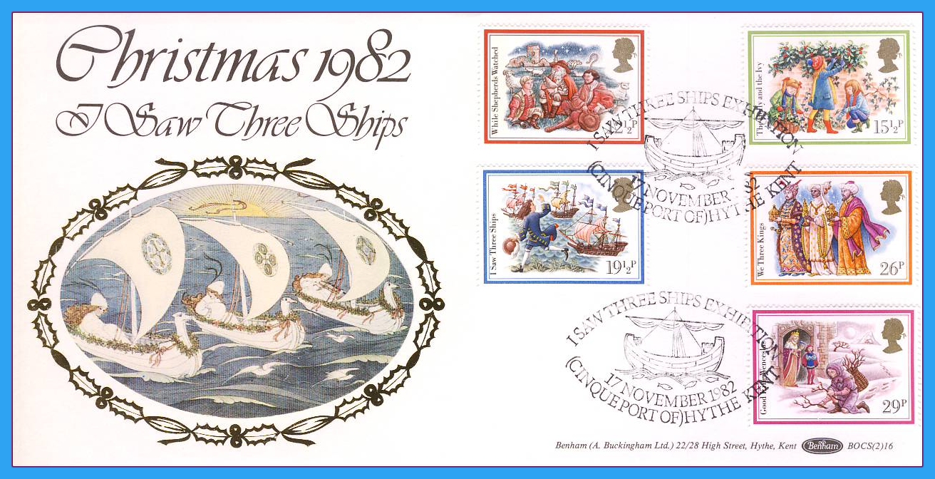 1982 Christmas Stamps I Saw Three Ships Cinque Ports Benham Silk FDC BOCS(2)16 rcd96