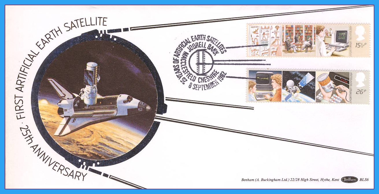 1982-09-08 Information Technology Stamps JODRELL BANK FDC Space Shuttle Satellites Benham Silk BLS6 refcd52