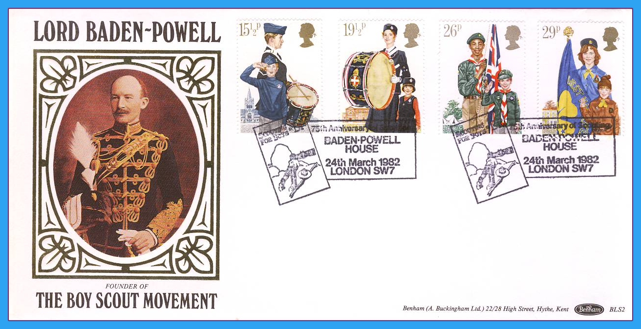 1982-03-24 Youth Organizations Stamps Scouts Baden Powell Benham silk FDC BLS2 shs Scouting for Boys refcd37