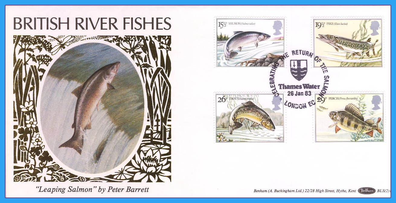 1983-01-26 British River Fishes Stamps SALMON Benham FDC Thames Water BLS(2)1 rcd106