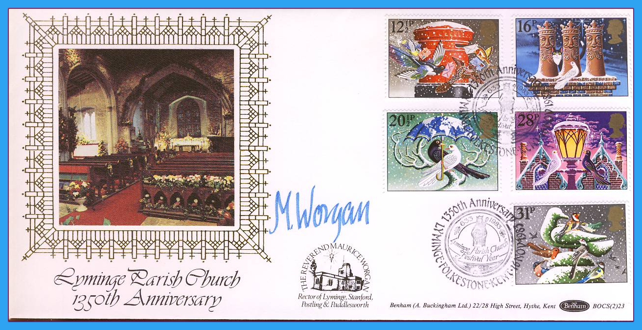 1983 Christmas Stamps FDC signed WORGAN Lyminge Parish Church BENHAM BOCS(2)23 rcd39