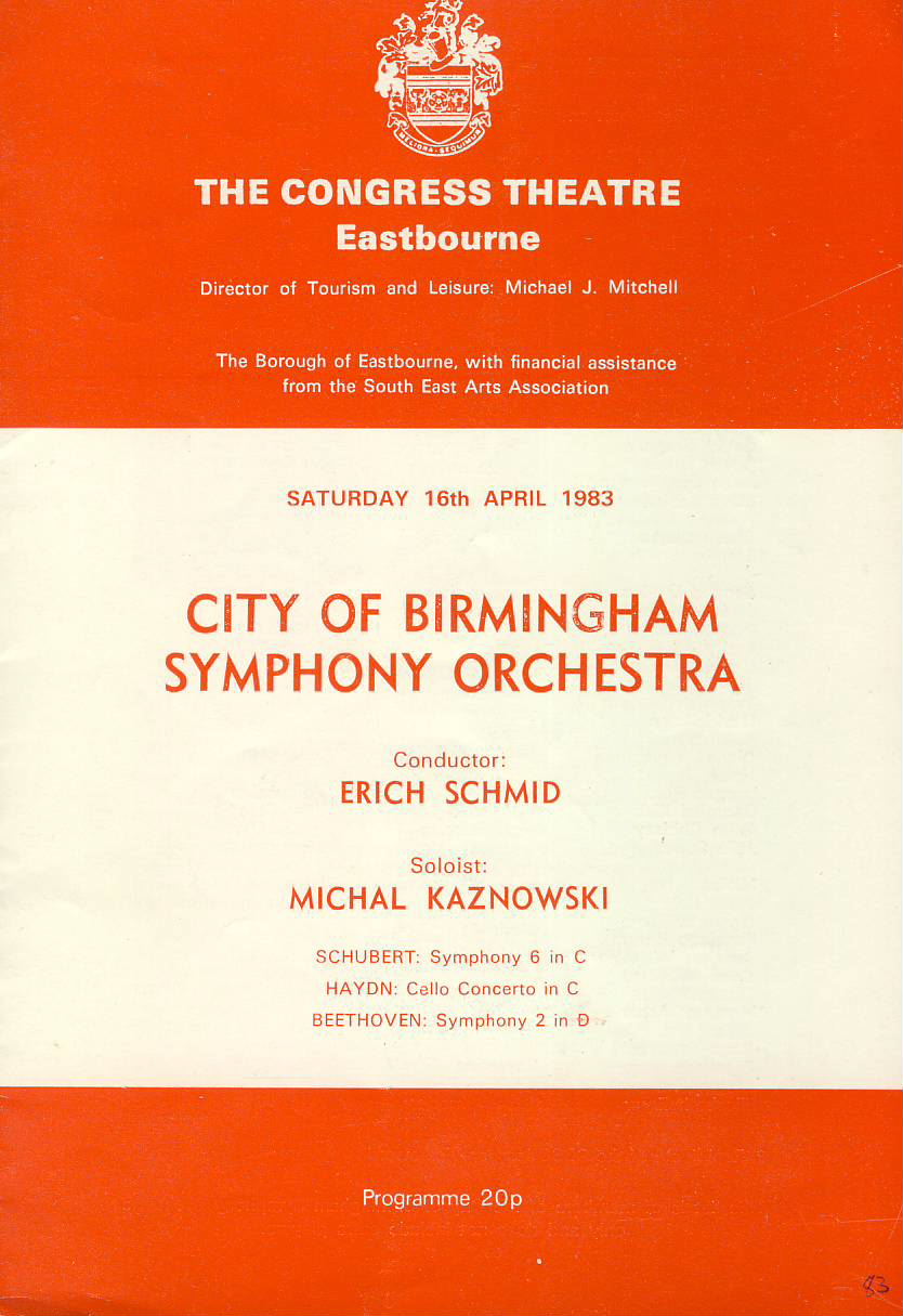1983 City of Birmingham Symphony Orchestra EASTBOURNE Theatre Programme refb1643