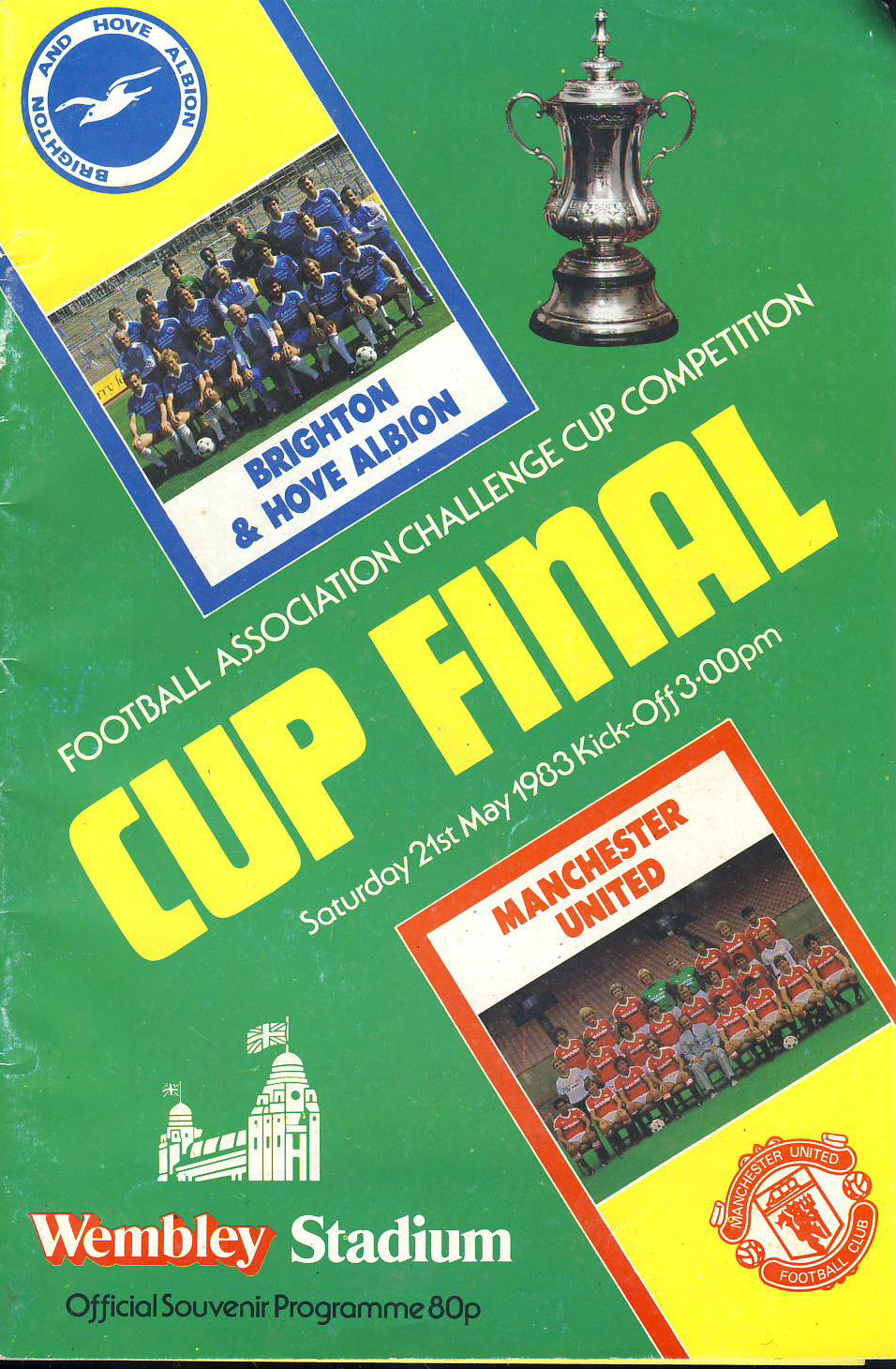 1983 Wembley Cup Final football programme Brighton v Man Utd ref0097 A1 Saturday 21st May 1983 Brighton & Hove Albion V Manchester United Official Souvenir Programme. Pre-owned item.