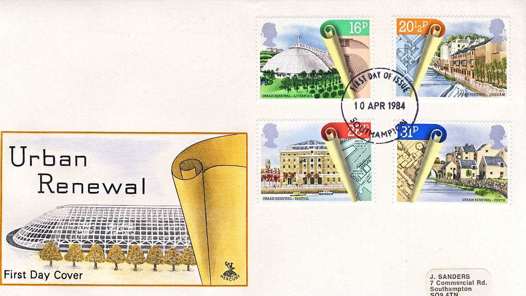 1984-04-10 Urban Renewal Stamps FDC Mercury First Day Cover refCD282 No insert card. Please see larger photo and full description for details.