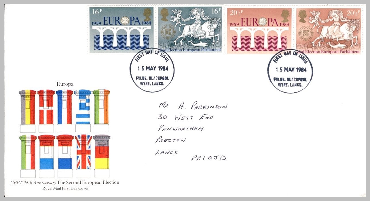 1984-05-15 Blackpool fdi Europa CEPT European Parliamentary Elections Stamps FDC refE212