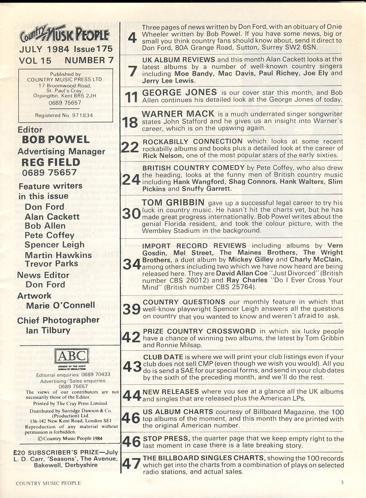 TOM GRIBBIN, WARNER MACK, BRITISH COUNTRY COMEDY. Good Condition for age. Full of interesting articles, photos and information about the country music scene from about 40 or more years ago. Please read full description and see 2nd photo showing contents list.More infoGood clean condition. This is an original vintage item in read condition. So it may have some page turns creasing, wear and scuffs to covers and spine. This listing is for the MAGAZINE ONLY. Sorry NO freebies, posters, extras or supplements.Please see photos for magazine details. Feel free to ask any questions. We have MANY MORE in our SHOP – please bookmark us and add us to your favourites. Thank you.Reference1984 July Country Music People magazine GEORGE JONES ref102311