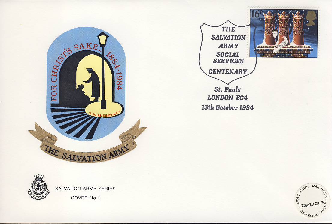 Cover No.1 in the Series 1984 Salvation Army Social Services Centenary ST PAULS LONDON EC4 Commemorative Cover refG165 For Christ’s Sake 1884-1984 13th Octobover Special handstamp postmark cancel. VGC unsealed, with insert card.