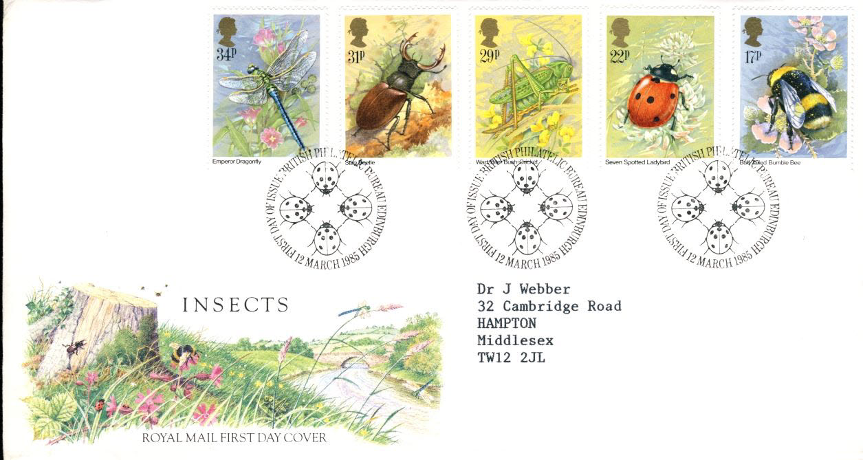 1985-03-12 Insects Stamps FDC refE160 Cover in good condition. Please see larger photo and full description for details.
