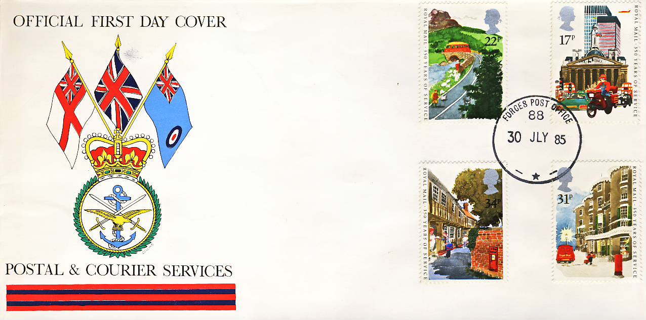 1985-07-30 350 Years of the Royal Mail Stamps FDC BFPO 88 Official First Day Cover refG632