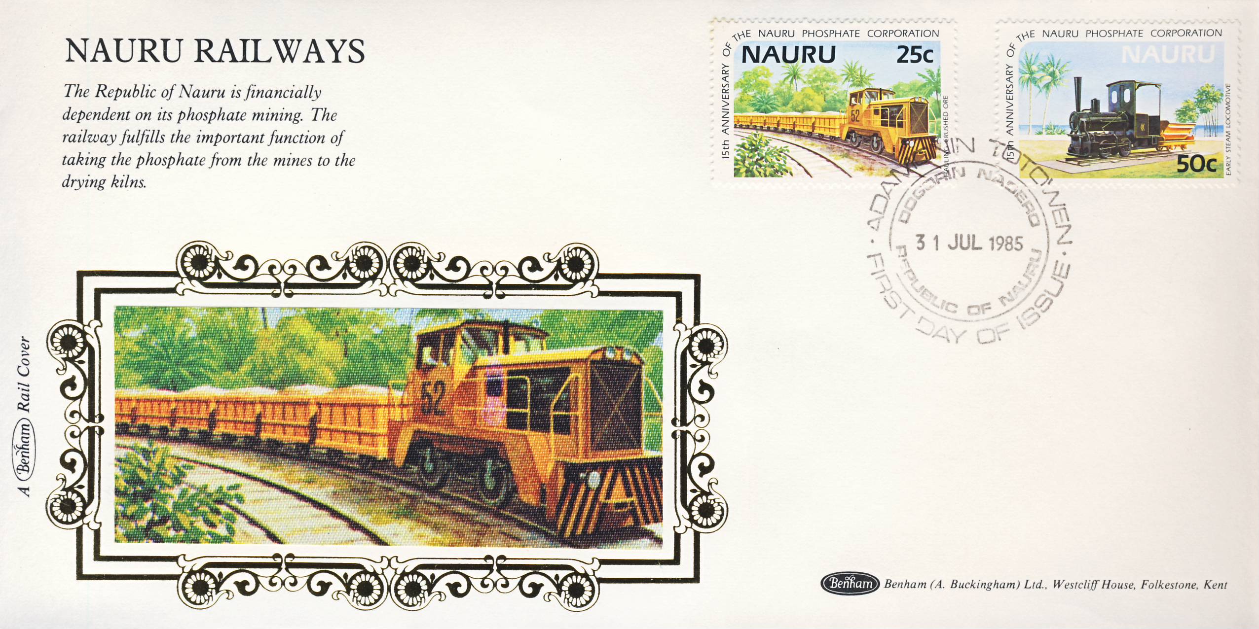 1985 Benham Rail Cover NAURU RAILWAYS 15th Anniversary of the Nauru Phosphate Corporation fdi 31 July 1985 – NO INSERT – our ref43