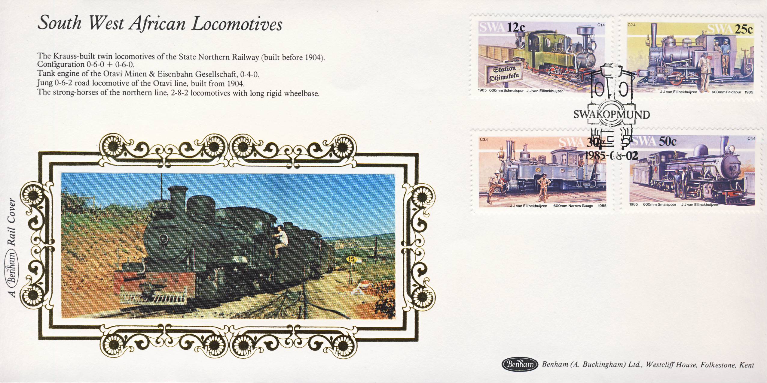 1985 Benham Silk Rail Cover SOUTH WEST AFRICAN LOCOMOTIVES shs Swakopmund ref48