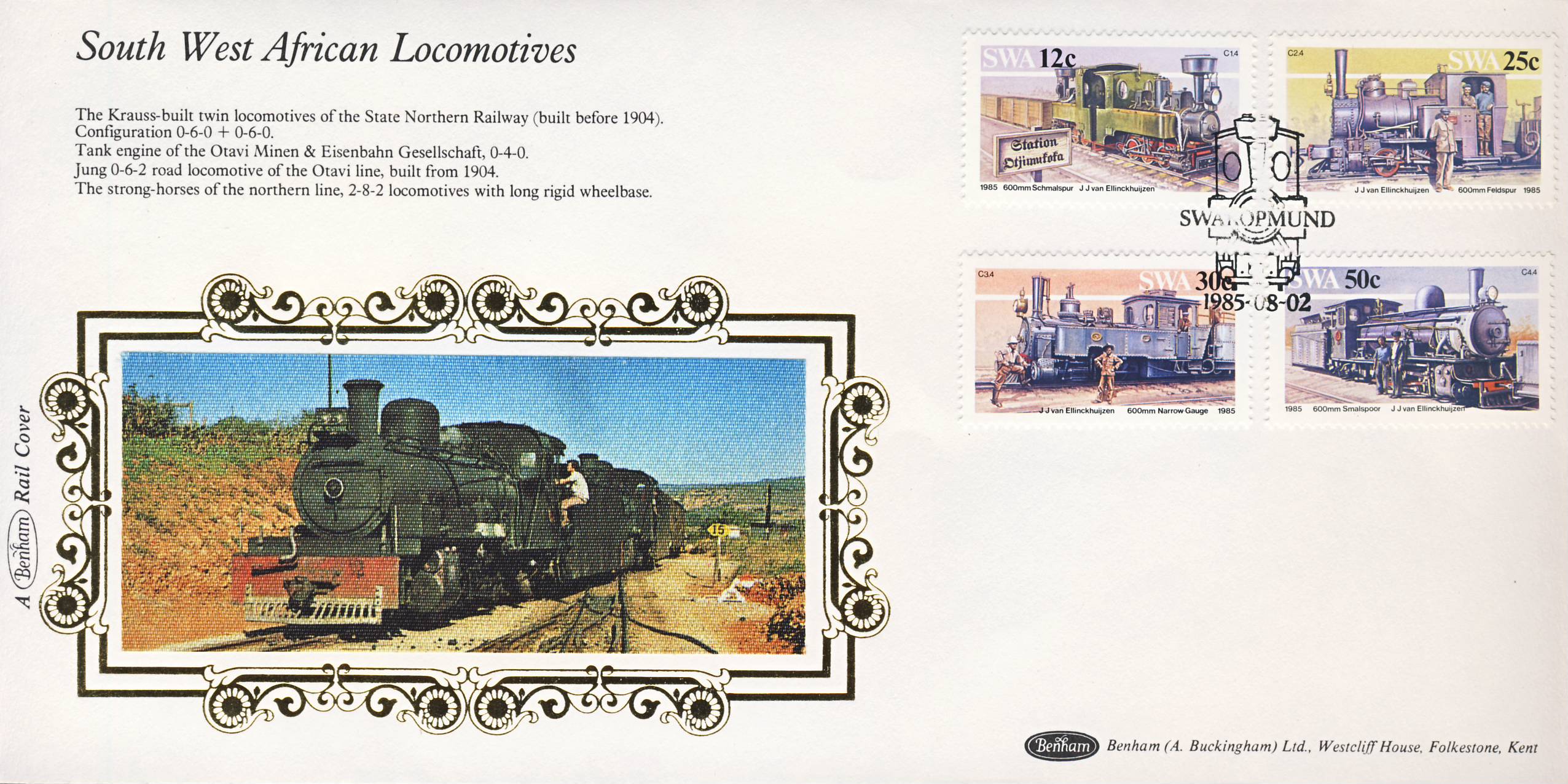 1985 Benham Silk Rail Cover SOUTH WEST AFRICAN LOCOMOTIVES shs Swakopmund ref49